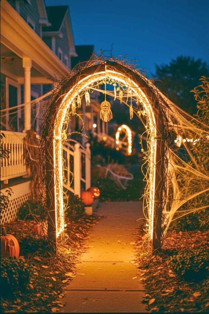 Stretch dollar-store spiderwebs between trees to form a webbed tunnel. Attach oversized fake spiders and glittering eggs. Add subtle movement using fishing line and gentle breezes. Don’t forget a spider sound effect or occasional falling “web” that brushes shoulders.