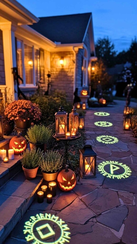 Project magical runes or ancient spell text along your walkway or on your fence. Slowly animate them to pulse or glow.