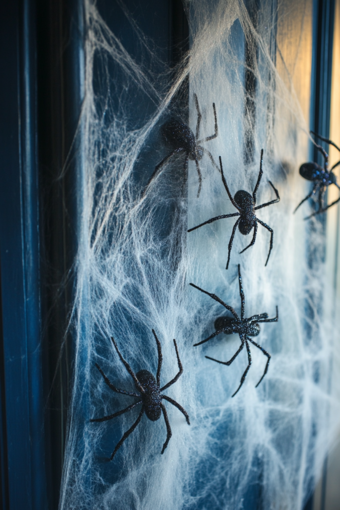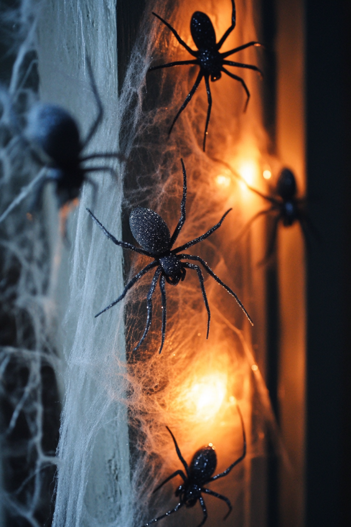2. Spiderweb Mantel: Drape a black or white spiderweb across your mantel and decorate it with spiders, skulls, and candles.