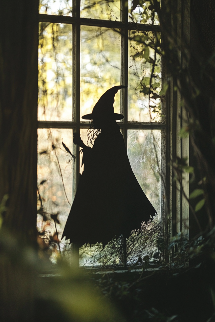 2. Flying Witch Silhouette: Hang a witch silhouette from a tree or porch, creating the illusion that she’s flying across the moonlit sky.