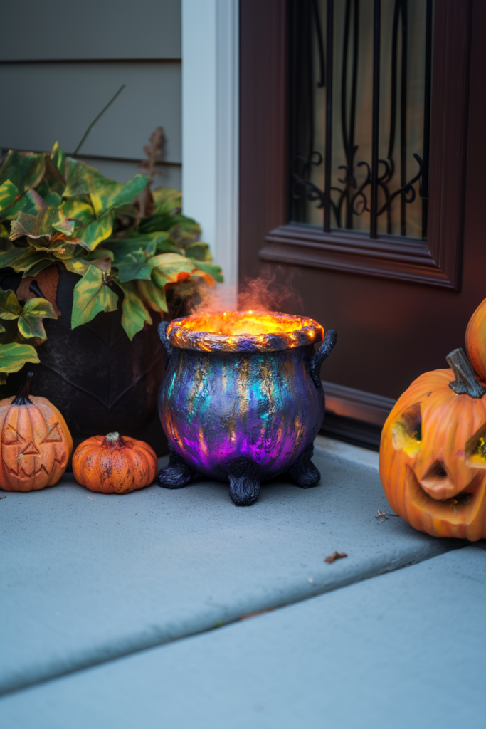 3. Cauldron of Spooky Blooms: Fill a large cauldron with dried branches, black roses, and other eerie flora for a striking centerpiece on your porch or doorstep.