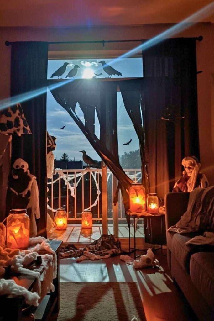 Drape your balcony in torn black fabric, glowing lanterns, and fake crows perched on the railing. It becomes a chilling spot overlooking the night sky.
