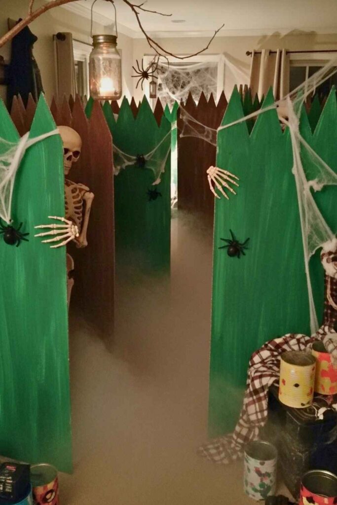 If you have hedges or bushes, turn them into a haunted maze with hidden skeletons, scarecrows, and sudden light projections. Wandering through feels like being hunted.