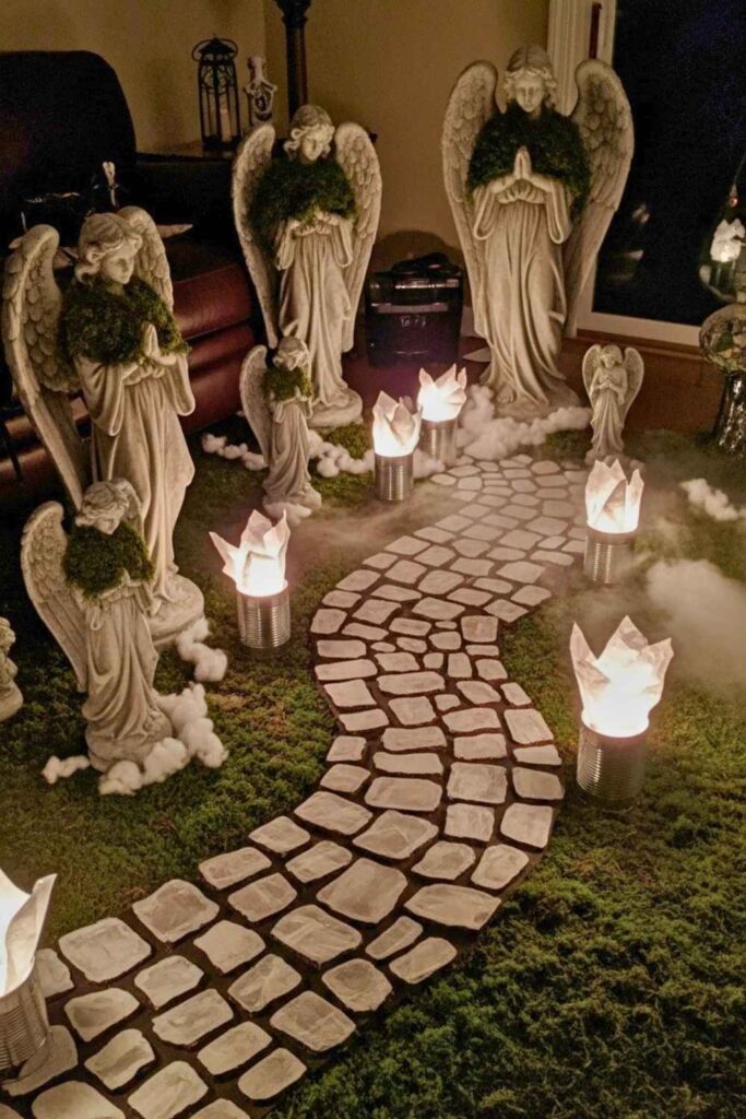 Line your yard or garden with old statues, gargoyles, and angel figures covered in moss. Add hidden speakers that play whispers, so it feels like the statues themselves are alive.