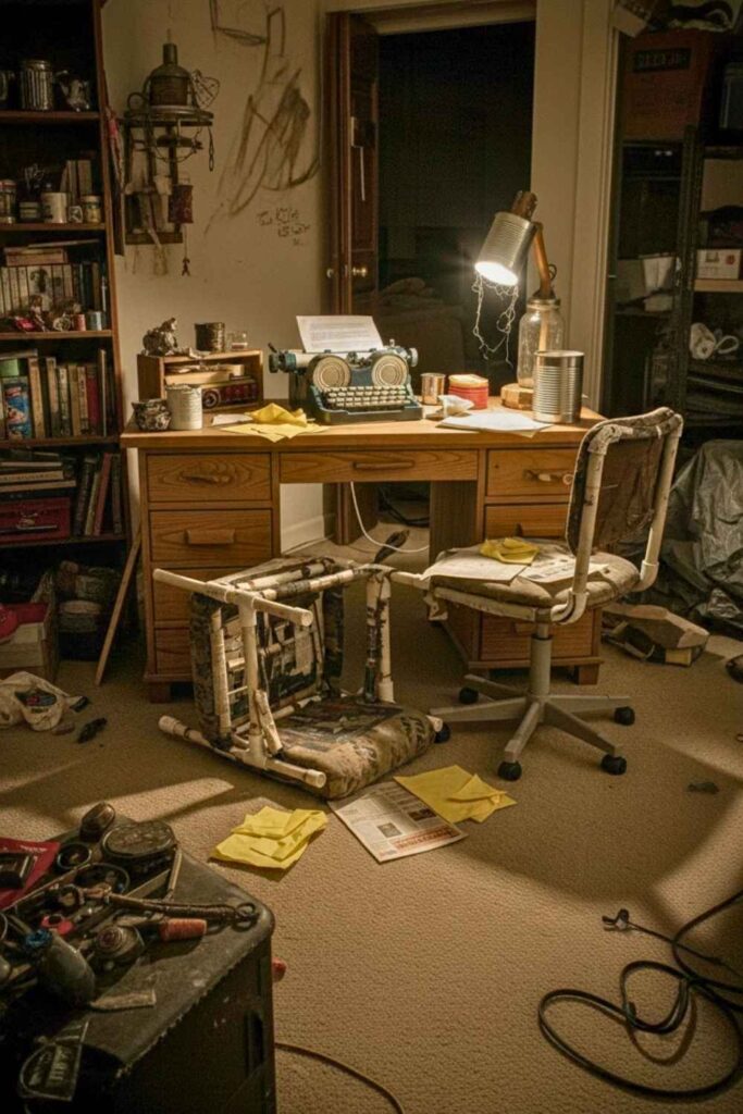 An unused office can become chilling with scattered papers, a typewriter still loaded with unfinished words, and an overturned chair. It feels like someone left in a rush — but never returned.
