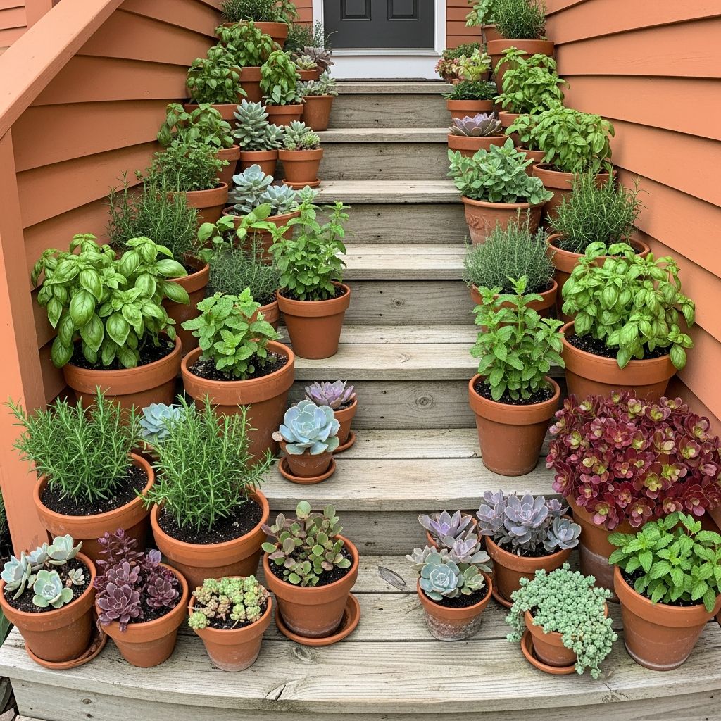 If your home has front steps, use them as a stage for a botanical display. Line every step with terracotta pots of varying sizes, filled with sacred plants like white sage, aloe vera, and various succulents. Using mismatched pots adds to the ‘hippie’ charm, making the collection feel organic rather than forced. This vertical garden saves space while creating a lush, green corridor that welcomes guests with the vibrant energy of living things. It is practical, beautiful, and easy to maintain.
