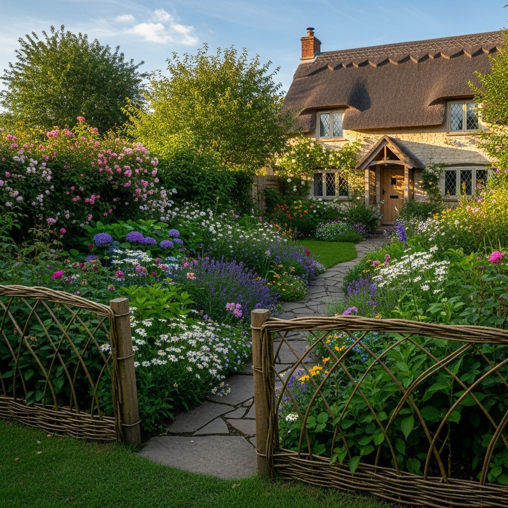 Replace a standard picket fence with a hand-woven willow or hazel wattle fence. This rustic, earthy fencing style looks like something out of a fairytale and provides a natural backdrop for your garden. The organic lines of the woven wood perfectly suit the witchy aesthetic, especially when paired with climbing roses or morning glories. It defines your property line without the harshness of modern materials, keeping the energy of your front yard soft and inviting for both people and nature.