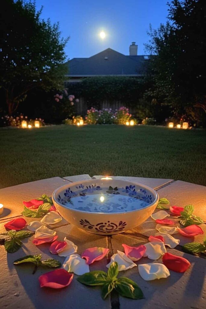 Place a ceramic or stone bowl in a quiet part of your garden and fill it with water. At night, it reflects the moon, becoming a tool for moon-gazing or intention-setting. Add floating flower petals or crystals for extra magic.