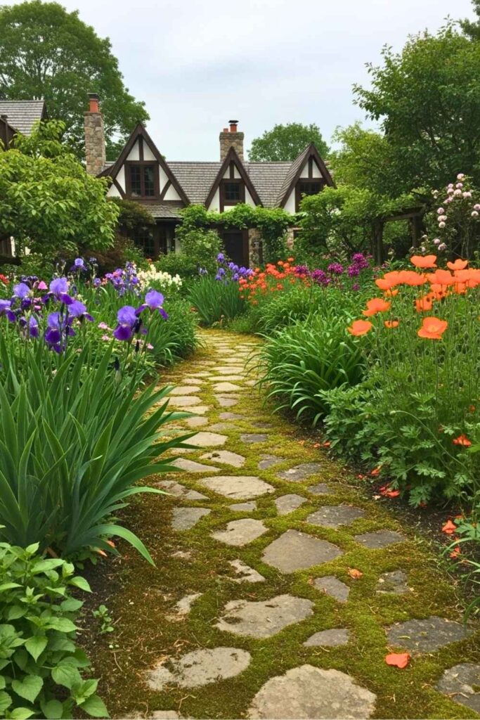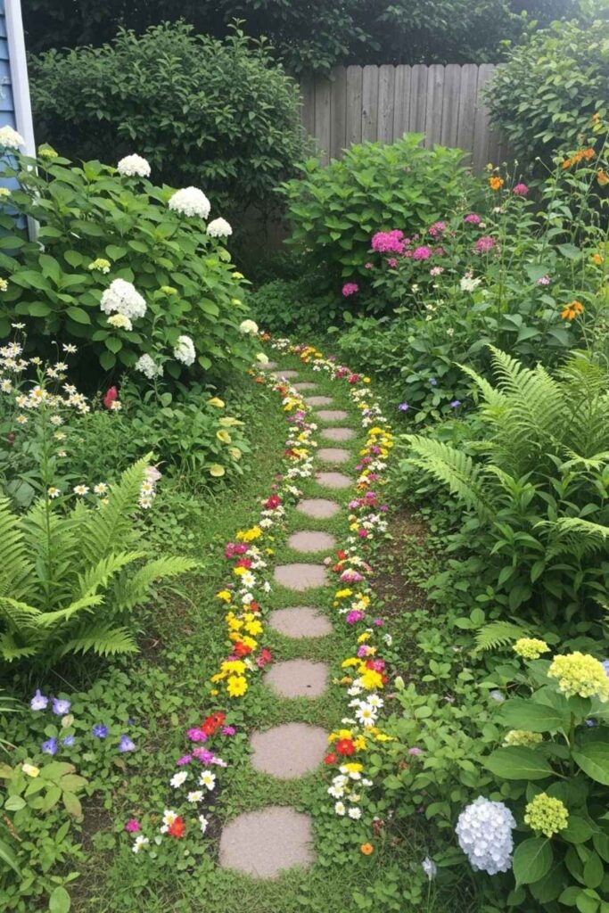Create a meandering pathway with irregular flagstones. Surround it with native flowers for low-maintenance beauty, ideal for a cottage or pollinator-friendly garden.