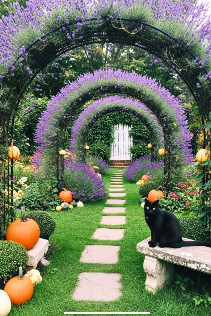 A narrow archway or trellis lined with fragrant lavender creates a dreamy entry to your garden.