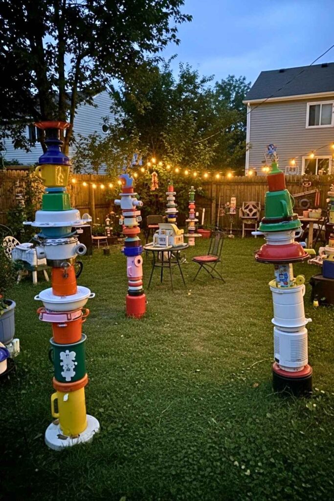 10. Upcycled Garden Totem Poles