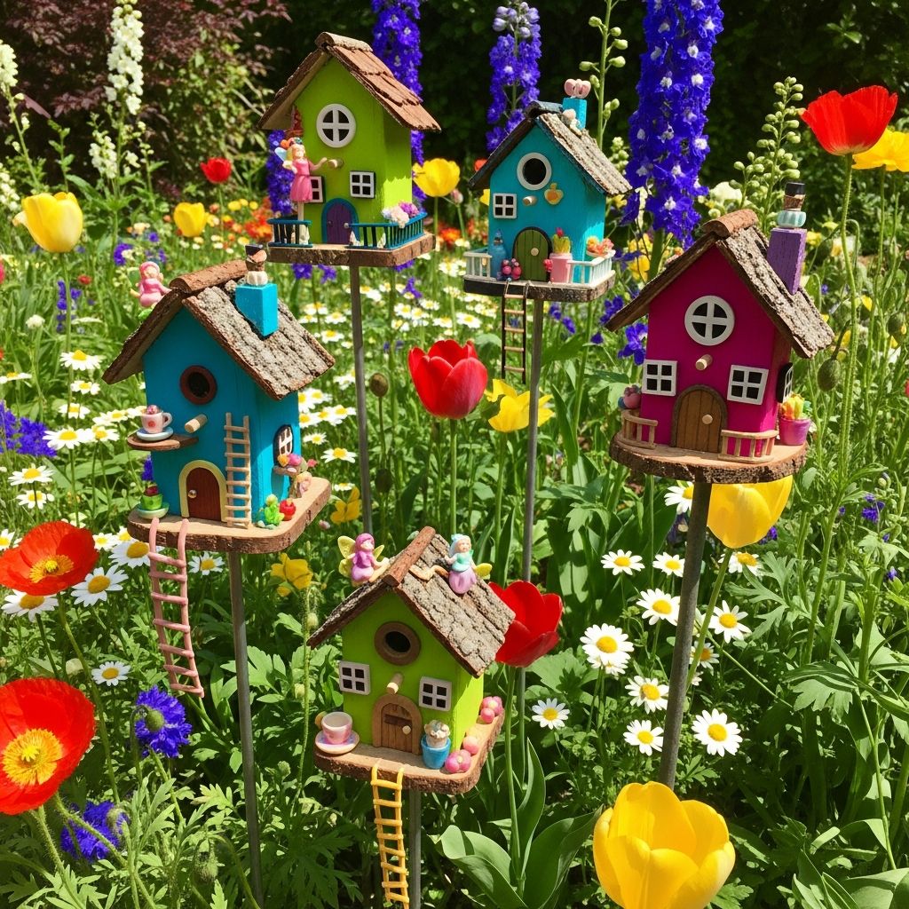 Standard wooden birdhouses can easily be transformed into elaborate fairy mansions. Paint them with soft pastels or earthy tones and add details like stone chimneys made of pebbles or roofs covered in moss. You can even add a small ‘balcony’ around the entrance hole. Group several of these at different heights using stakes in a flower bed to create a fairy high-rise district. It’s a great way to add height to your garden and reuse old craft supplies.