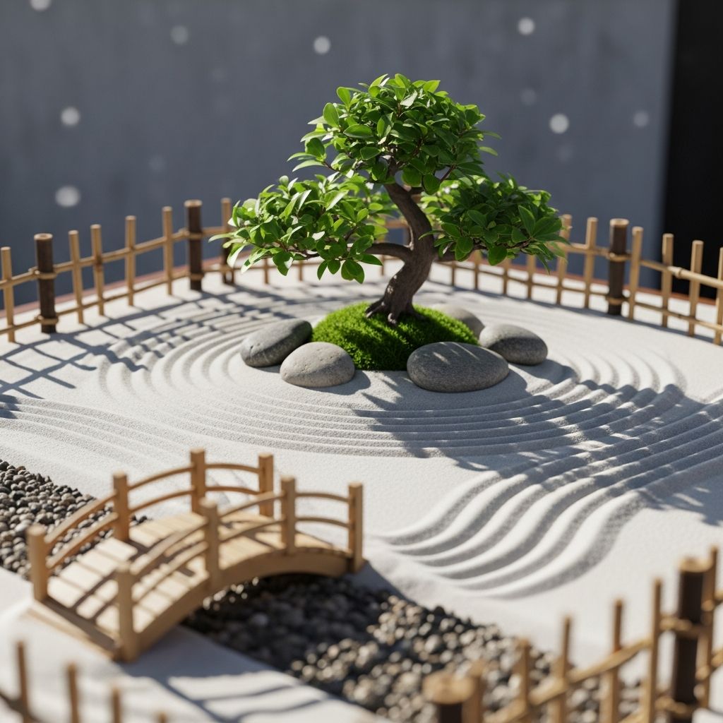 For a peaceful and modern take, create a Zen-style fairy garden using bamboo and sand. Use cut bamboo stalks to create tiny fences or water features. A small rake can be used to create patterns in white sand, and a few carefully placed black river stones can serve as focal points. Plant a small Japanese maple or a bonsai tree to provide scale. This minimalist approach is very calming and works perfectly as a tabletop garden for a patio or a quiet corner of the yard.