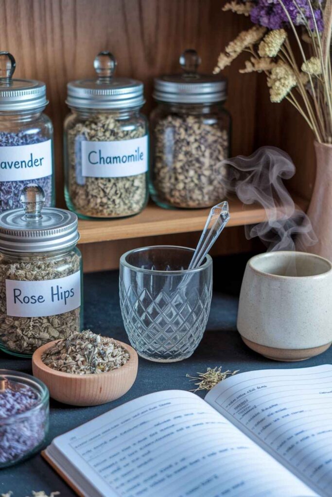 Herbal teas are part of my everyday rituals. Set up a small station with your favorite loose-leaf blends, a kettle, mugs, and honey. Add jars labeled “clarity,” “love,” or “dream.” It’s like a tiny witchy cafe right in your kitchen.
