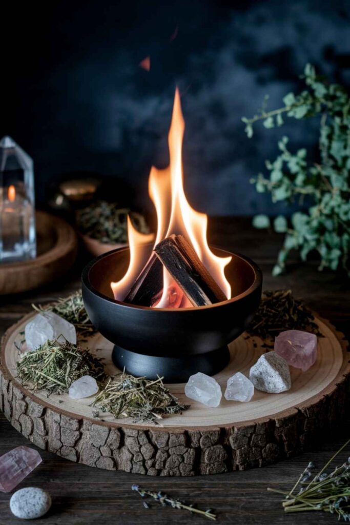 From lanterns to small cauldrons used for incense or fire rituals, the element of fire adds passion and transformation energy. I like using a tabletop fire bowl or flame-effect diffuser to bring that glow without the smoke. Fire speaks to our primal spirit and brings life to still corners.