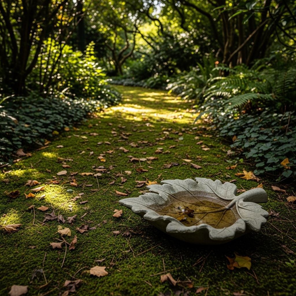 For a more architectural look, use a large rhubarb or hosta leaf as a mold for a concrete basin. Once cured, the concrete retains the beautiful vein details of the leaf. Place this shallow bowl directly on the ground and fill it with moist soil and stones. Its organic shape blends seamlessly into woodland gardens or shaded corners.