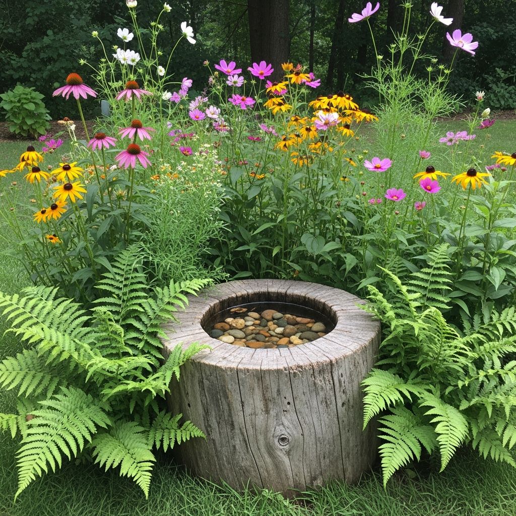 Find a fallen log and carve out a shallow depression in the top. Fill the cavity with a mixture of sand, compost, and living moss. The moss helps retain moisture for longer periods, reducing the need for constant refilling. This rustic approach looks incredibly natural and provides a soft landing pad for delicate visitors.