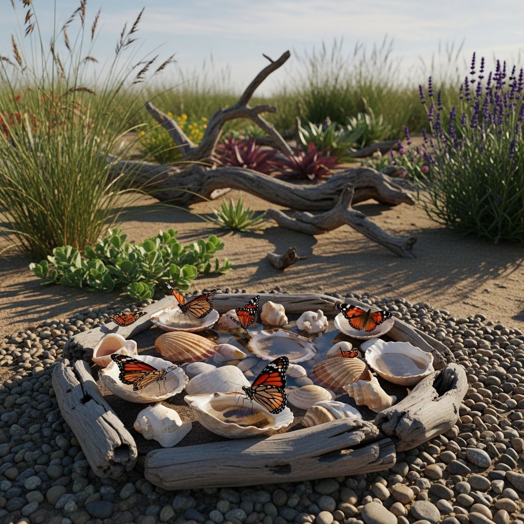 Create a miniature Zen garden specifically for pollinators. Use a large, shallow wooden tray filled with fine white sand and a few larger accent stones. Keep the sand damp and occasionally ‘rake’ it to keep the surface fresh. This minimalist design is both a meditative garden feature and a functional mineral station.