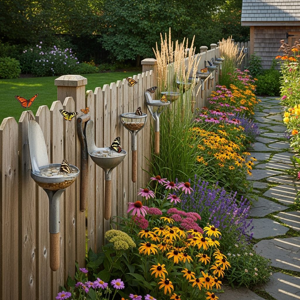 For a truly unique DIY, use old garden tools like rusty trowels or shovels as the base for small puddling cups. Mount them to a fence or a wooden post and fill the scoops with damp sand. It is a clever way to recycle old tools while creating a functional art piece that butterflies will love.