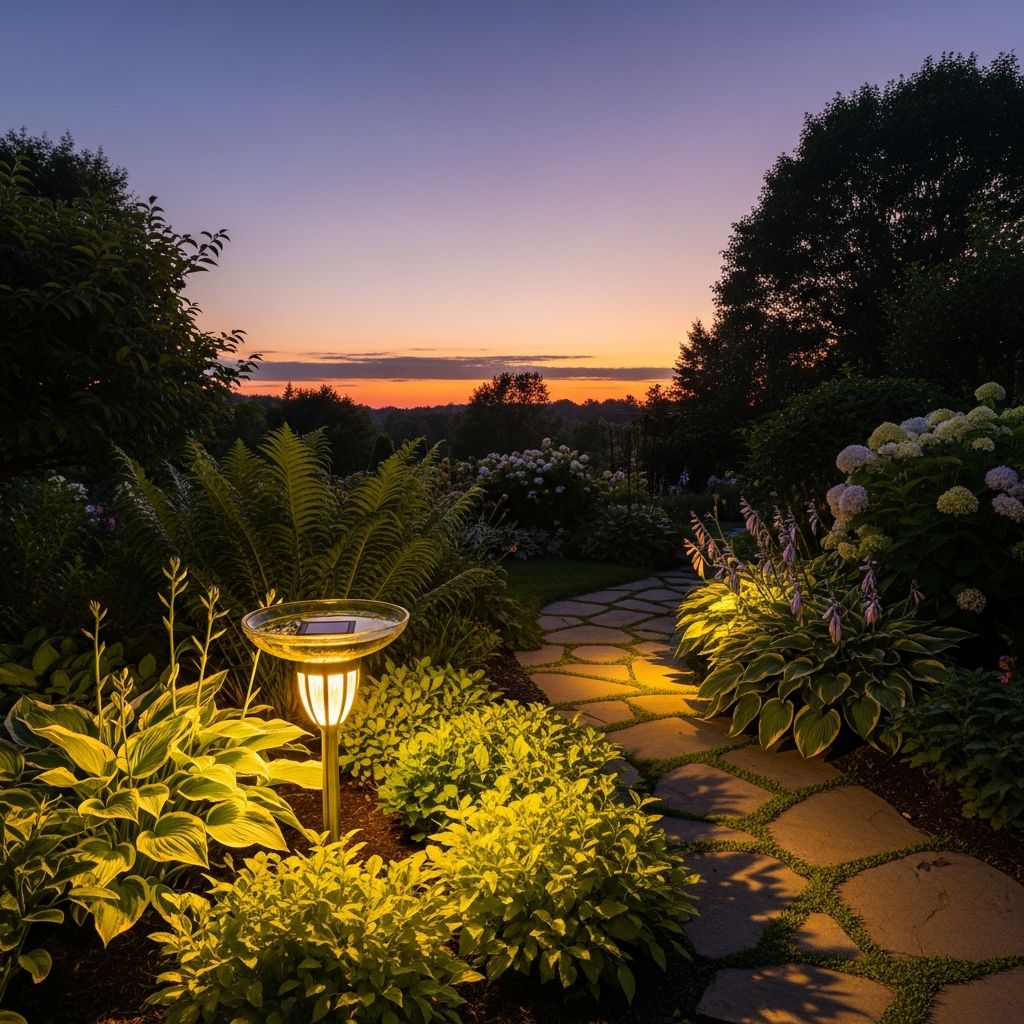 For a bit of nighttime magic, I used a thick glass serving bowl and glued it to the top of a plastic solar light stake after removing the top cap. During the day, the glass catches the sunlight and glitters beautifully. At night, the light glows through the water, creating a stunning focal point. I placed this one near my porch steps so I could enjoy the view during my evening tea.