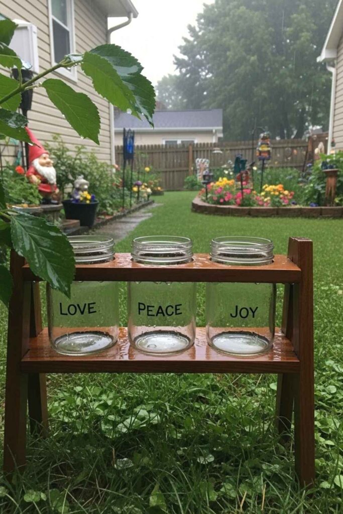 Set up a rustic shelf or stand to hold jars that collect rainwater. Label each jar with moon phases or intention tags like “Purification,” “Healing,” and “Growth.” Rain becomes your element of enchantment.