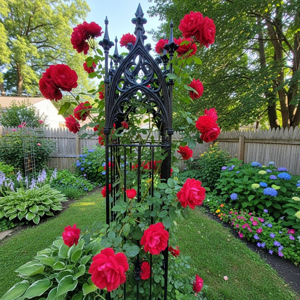 5. Wrought Iron Gothic Trellis for Climbing Roses
