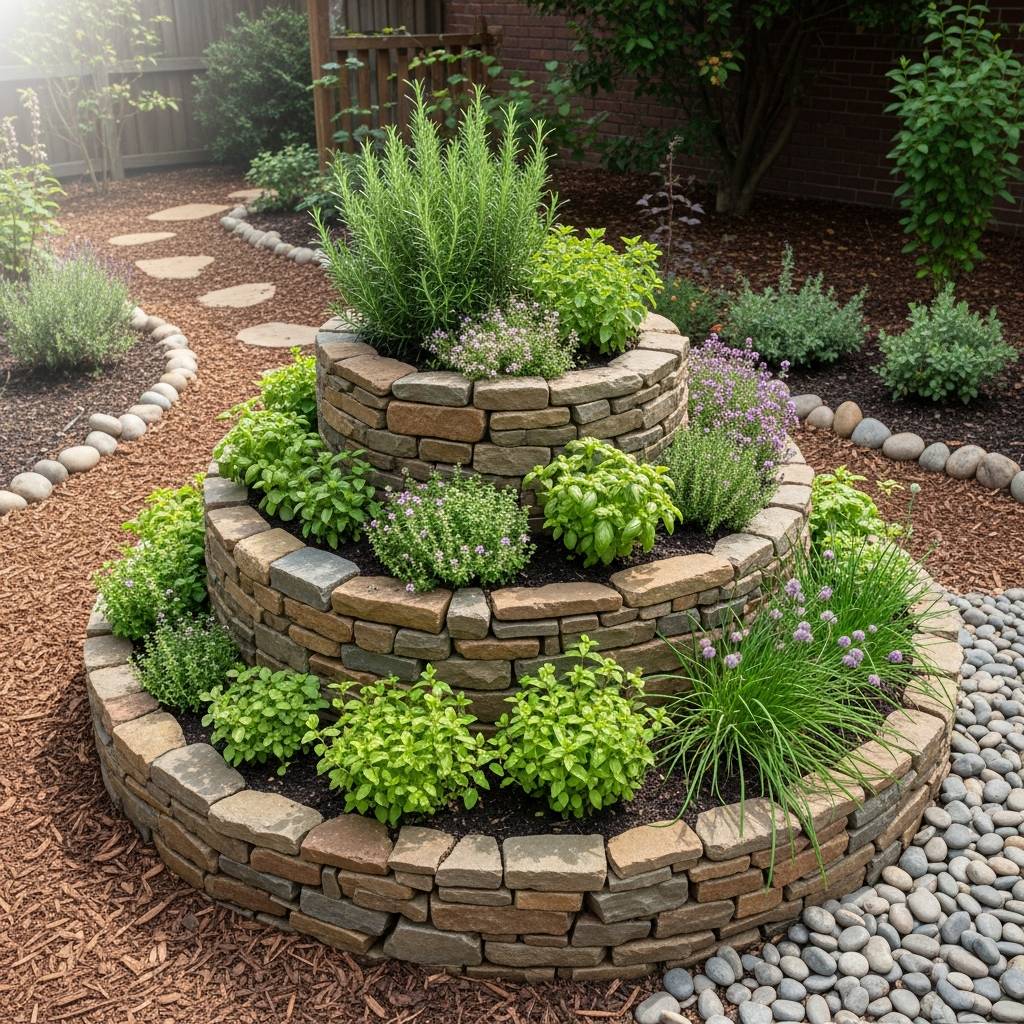 An herb spiral is a permaculture classic that fits perfectly into the witchy garden. Built from local stones, it represents the spiral of life. I recommend planting culinary and magical herbs like basil, thyme, and sage in the different microclimates the spiral creates. It’s a beautiful, three-dimensional focal point for a small yard. The structure looks incredibly grounding and purposeful, especially when the stones are allowed to grow a bit of lichen or moss over time, blending it into the landscape.