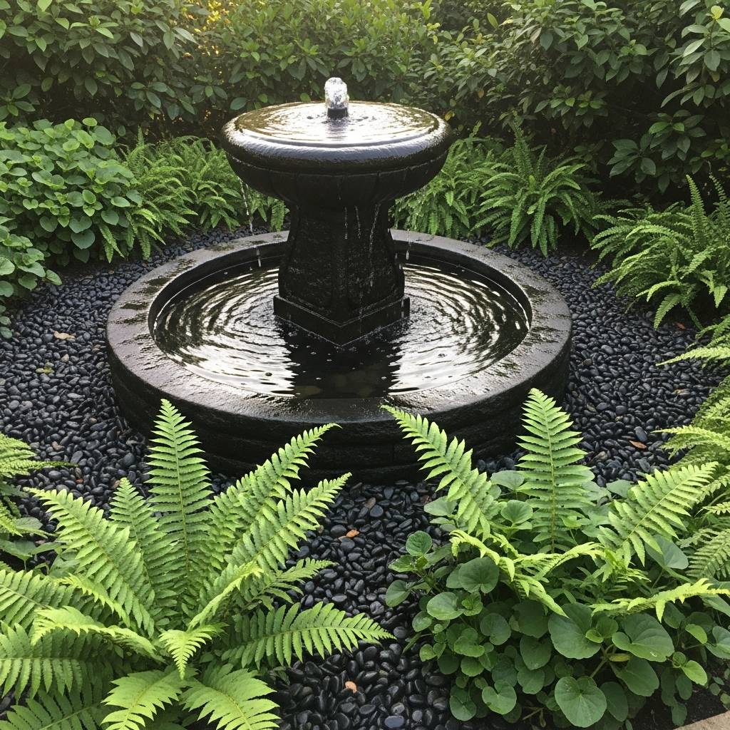 Water is a powerful element for cleansing and reflection. A small, modern black basalt or obsidian-colored stone fountain is a perfect witchy addition. The sound of trickling water is incredibly soothing for meditation. I suggest surrounding the base with black river stones to keep the color palette dark and mysterious. This focal point adds a sense of flow and tranquility to a compact garden, making it feel like a high-end, mystical spa retreat in your own backyard.