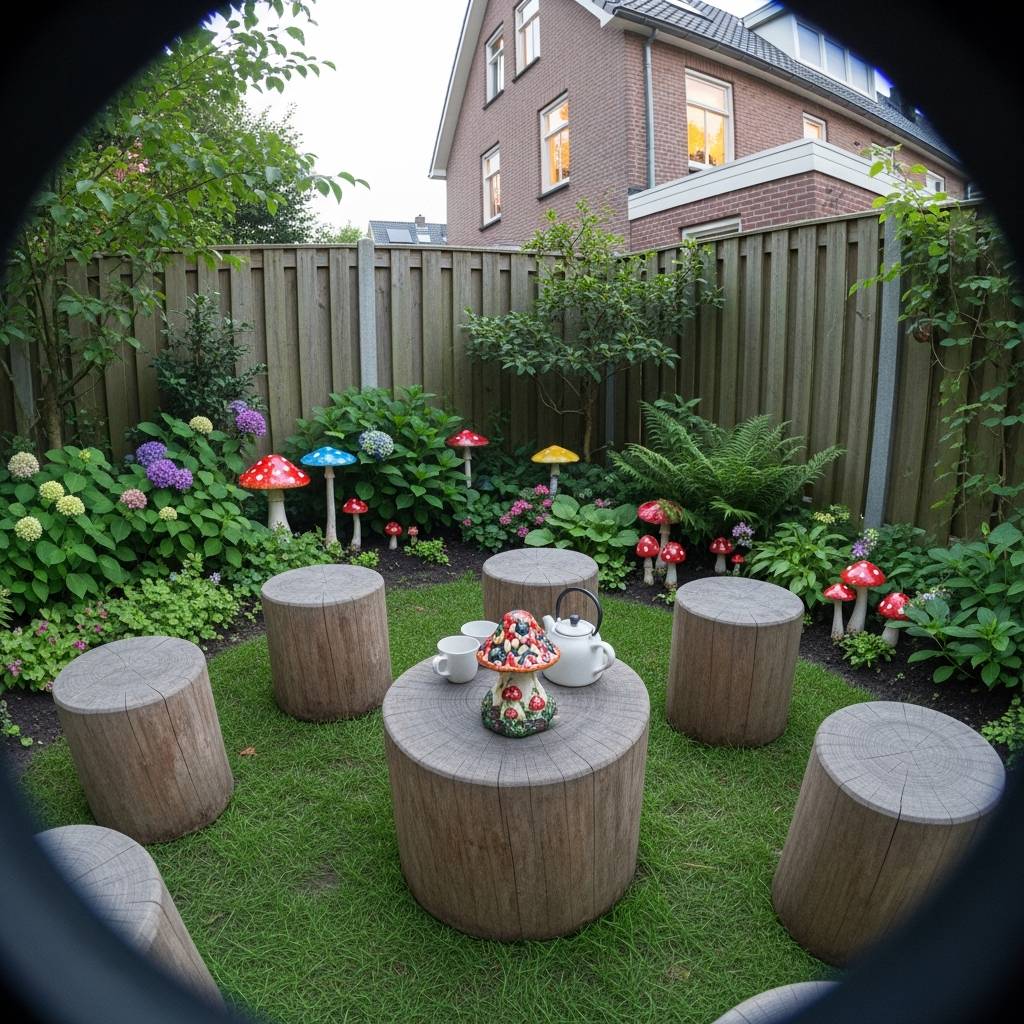 Instead of standard patio furniture, use gnarled pieces of driftwood or reclaimed stumps as stools and side tables. To lean into the witchy aesthetic, you can even add realistic ceramic or painted wooden mushrooms around the base of the seats. This creates a ‘faerie ring’ vibe that feels earthy and grounded. I love how these organic shapes break up the straight lines of a small suburban yard, making it feel like an ancient woodland clearing rather than a modern lot.