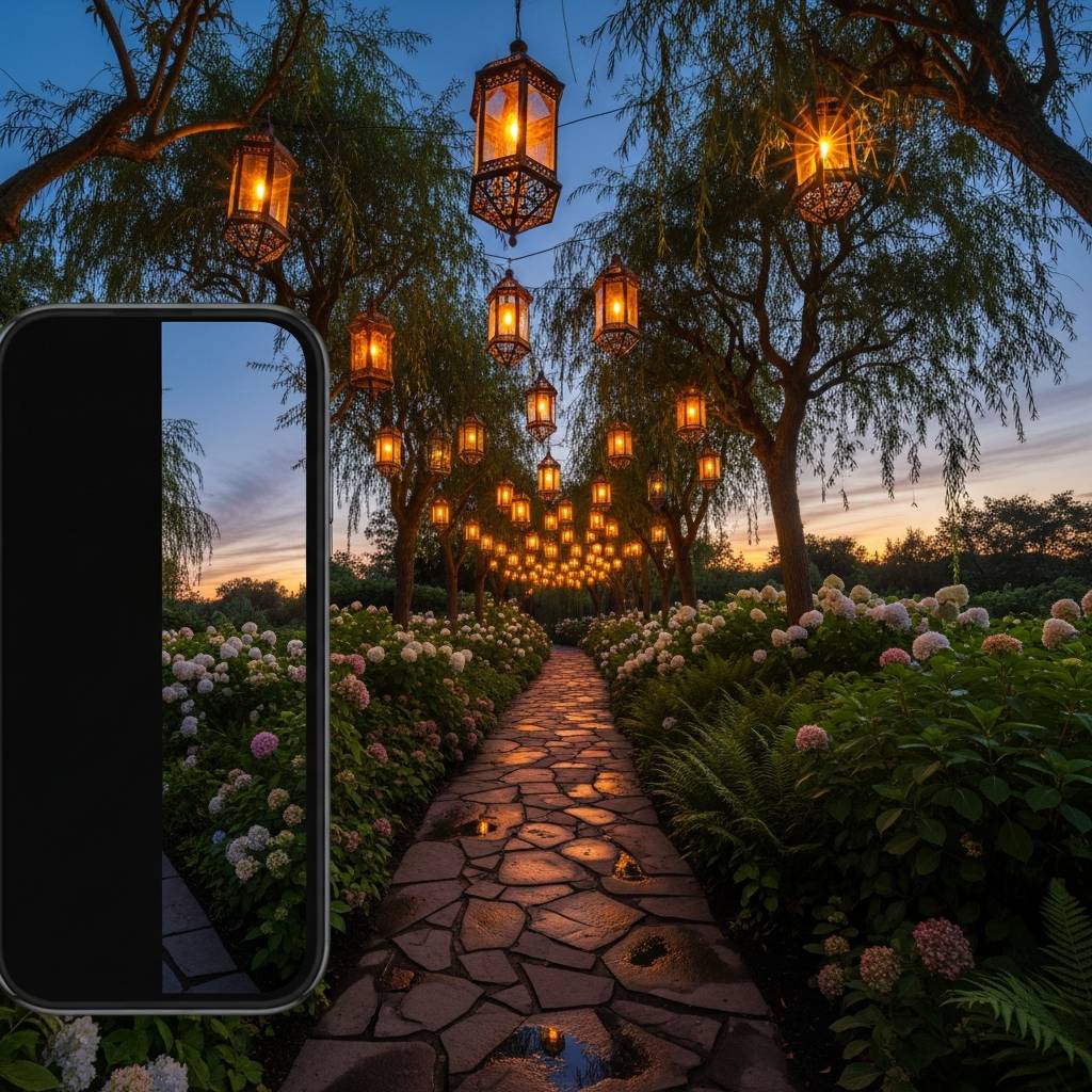 Create a magical overhead display by stringing Moroccan-style lanterns or simple glass jars with candles from willow branches arching over a path. In the evening, the flickering light creates a dancing shadow play that is purely magical. This works especially well in small gardens because it uses the ‘ceiling’ of the outdoor space to add atmosphere. I find that using a mix of copper and black metal lanterns adds a rustic, eclectic feel that perfectly suits the witchy aesthetic.