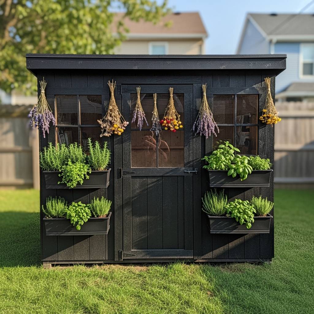 If you have the space for a small tool shed, paint it a matte black or a deep forest green and add a ‘Witch’s Apothecary’ sign. Decorate the exterior with bundles of drying flowers and a small window box of medicinal herbs. This becomes the focal point of the garden, suggesting a world of hidden knowledge inside. It’s a practical place to store your gardening tools and magical supplies, while serving as a large-scale decor piece that anchors the entire witchy theme of your backyard.