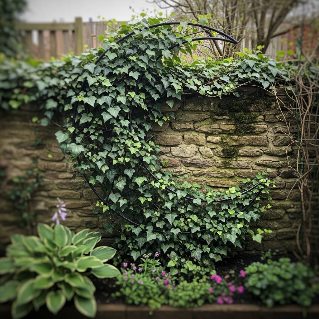A custom metal trellis in the shape of a crescent moon is a stunning way to support climbing plants like ivy or jasmine. It acts as a piece of wall art during the winter and a lush, green symbol during the growing season. In a small garden, this takes up zero floor space but provides a huge thematic impact. I love how the vines eventually take the shape of the moon, creating a living piece of celestial art that grows and changes with the seasons.