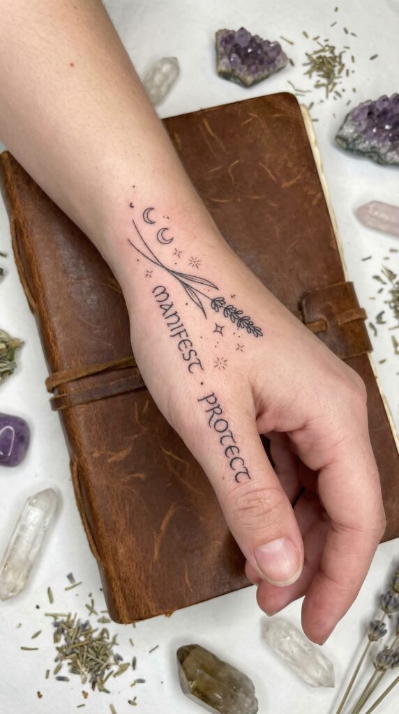 Herbs like sage, lavender, or rosemary are rooted in ancient magic and healing traditions. A botanical hand tattoo connects the wearer to earth energy, rituals, and natural wisdom.