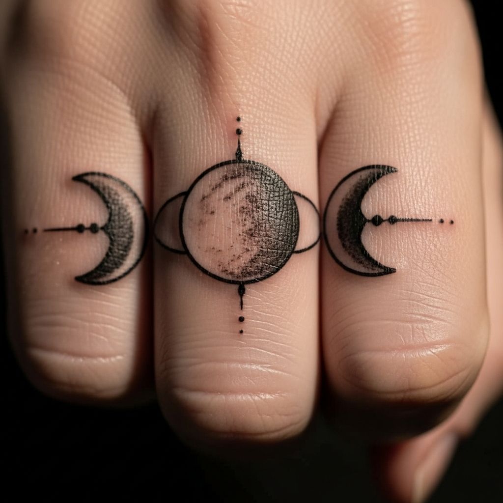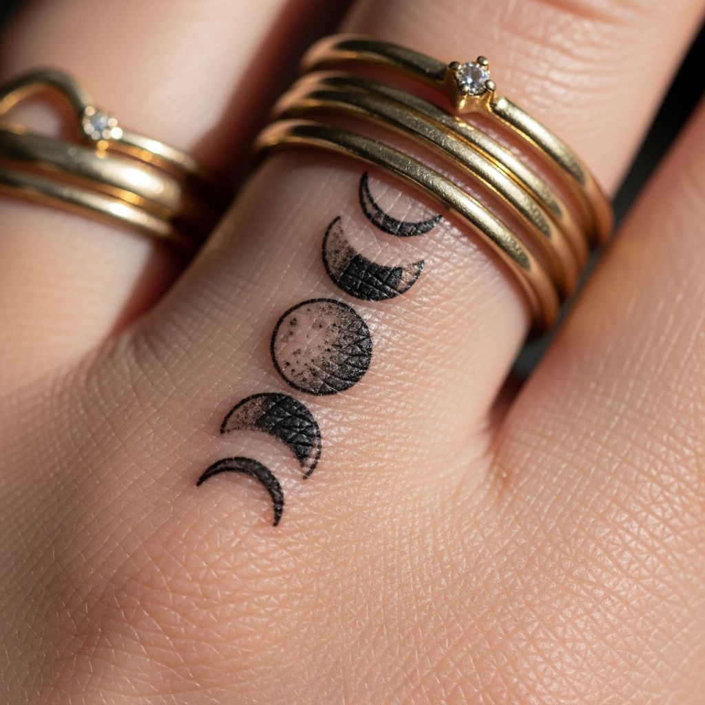 Symbolizing the eternal cycle of life, death, and rebirth, moon phases are a classic choice for witchy finger tattoos. Placing them along the side of your finger creates a beautiful, flowing sequence. This design is perfect for those who want to honor their personal growth and the shifting tides of their emotions. For a DIY look, keep the lines incredibly thin and ensure the spacing between each moon is perfectly even to maintain a delicate, sophisticated aesthetic.