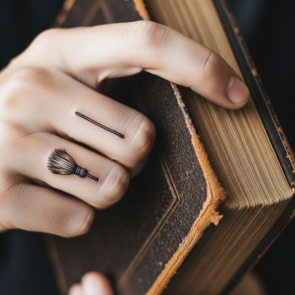 A small, stylized broom on the ring finger symbolizes clearing away negative energy and making space for new beginnings. This design is often associated with the home and the domestic craft of magic. To make it stand out, ask for a fine-line needle to capture the tiny bristles of the broom. It’s a subtle nod to traditional witchcraft that looks charming and unique in a vertical placement along the finger bone.