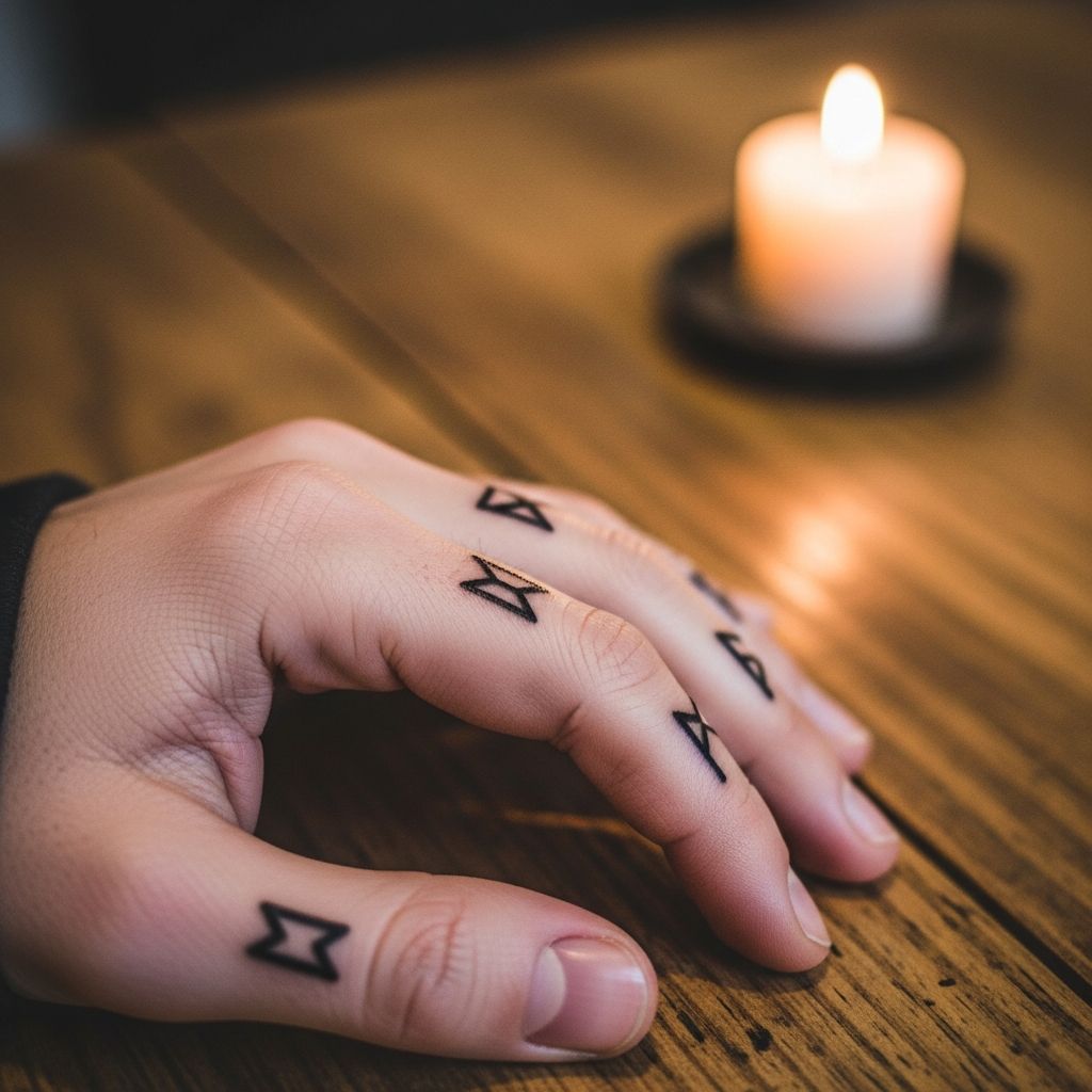 Runes like Fehu for wealth or Algiz for protection carry centuries of history. These geometric shapes are ideal for finger tattoos because their straight lines hold up well over time in high-friction areas. You can choose a single rune that matches your current manifestation goal or a series of them across multiple fingers. They offer a grounded, earthy aesthetic that feels like a secret code etched onto your skin.