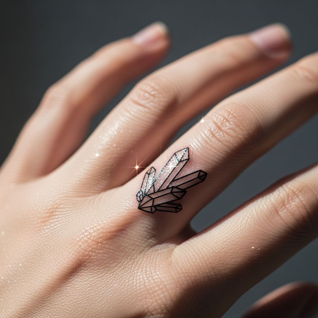 Crystals are used to focus energy and promote healing. A small, geometric crystal tattoo on the side of the ring finger represents clarity and groundedness. By using simple lines to create the facets, you get a design that catches the eye without being overly complex. It’s an ideal choice for someone who collects stones and wants to permanently wear the vibration of their favorite quartz or amethyst.