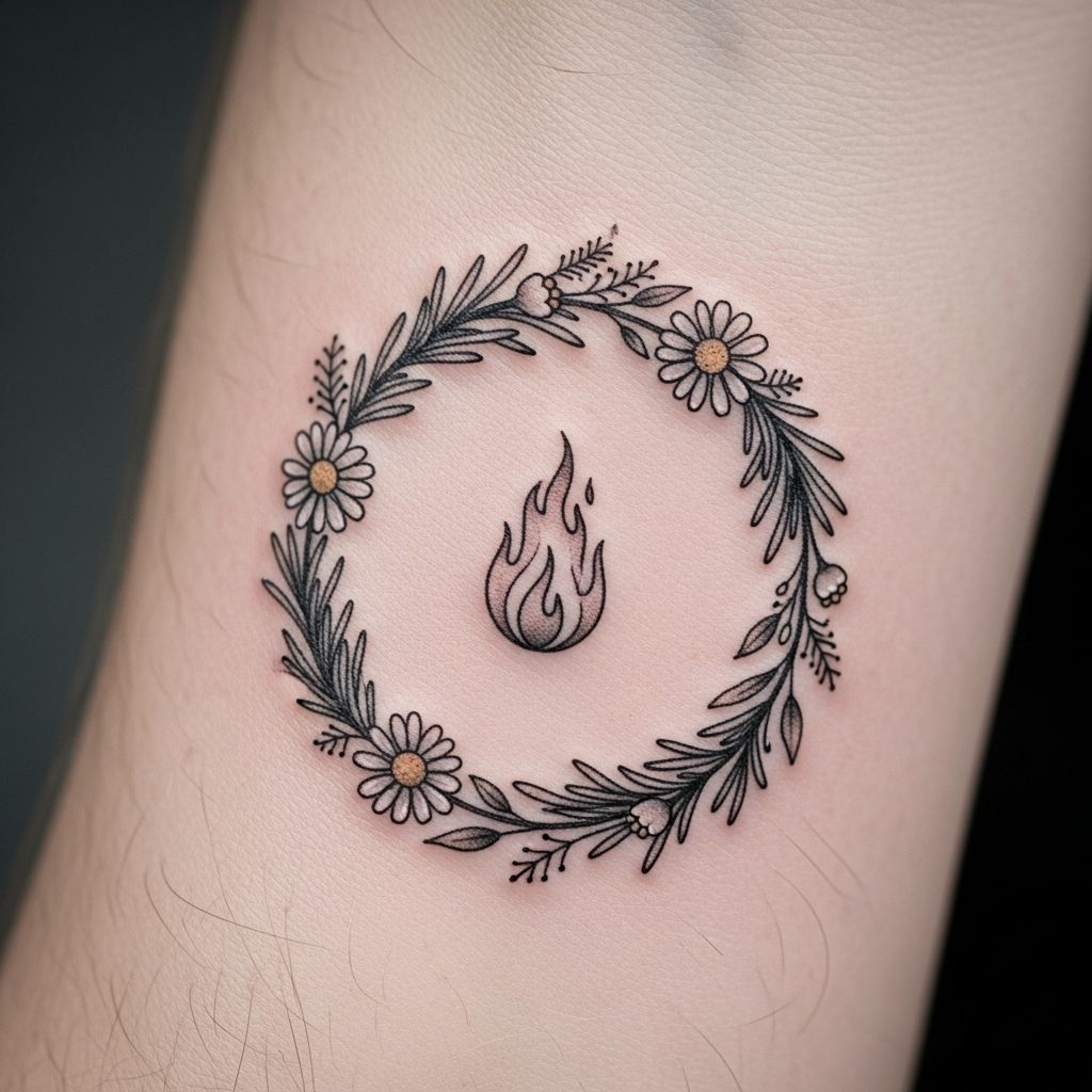 Brigid is the goddess of poetry, healing, and smithcraft. Her tattoos often feature the eternal flame or a Brigid’s cross made of reeds. If you are a creator or a healer, this design can serve as a constant spark for your inspiration. Adding herbs like lavender or chamomile around her can emphasize her healing nature. A wrist or ankle placement makes this a subtle but constant reminder of your creative fire.